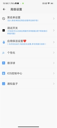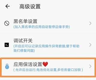 1、在手机里打开该软件的“高级设置”,找到“应用保活设置”选项。
