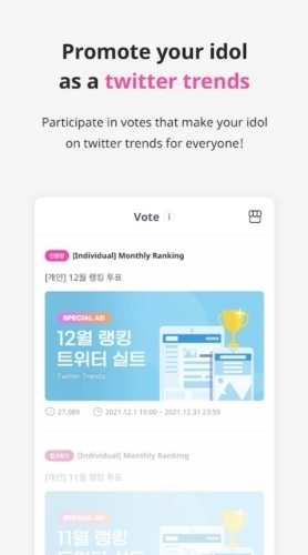 参与明星打榜、趣味投票等活动,冠军爱豆由你亲手打造~