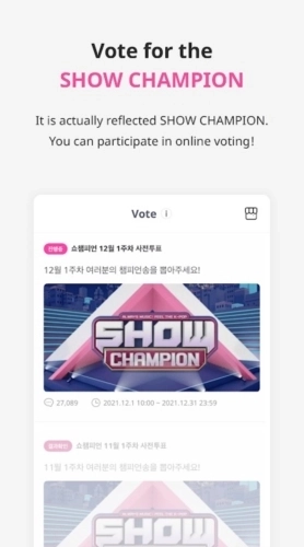 为IdolChamp平台上的MBC音乐节目《Show Champion》进行提前投票吧!