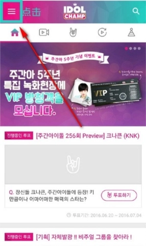 1.启动安卓版idolchamp应用,点击界面左上角的菜单栏按钮