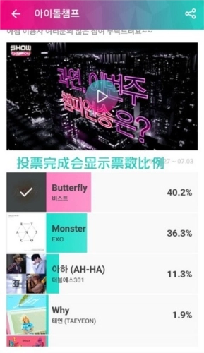 参与音乐打歌节目的事前投票,你的每一票都能让爱豆离冠军宝座更近一步!