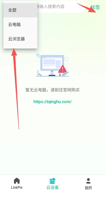 如果要使用云电脑功能部分,需要点击前往页面购买。