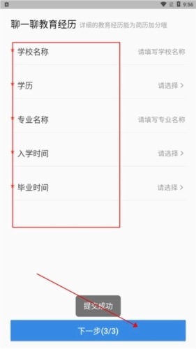 5、然后用户还需要填写自己的教育经历,包括学校名称、专业等信息。