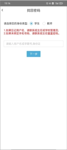 (1)如果忘记用户名,请联系班主任或学校管理员;
