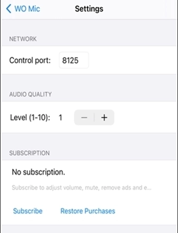在手机上打开WOMic应用。在开启服务器之前,您可以进入“设置”界面来调整成您偏好的配置。