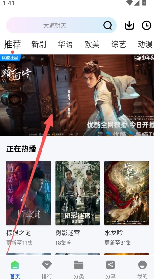 打开从本站获取的软件,进入首页后能看到各类剧集资源,选择你想缓存的剧集,点击其海报页就能进入播放界面。