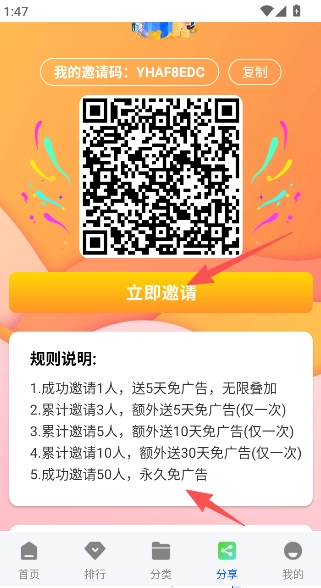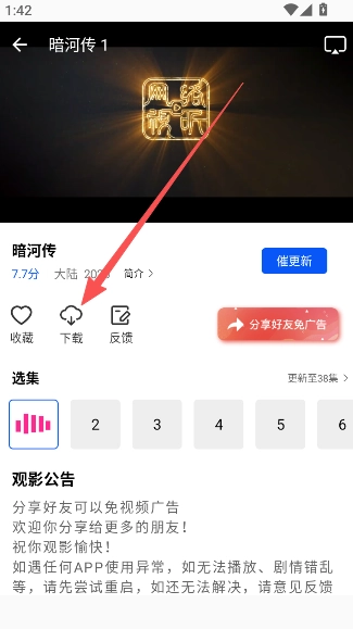 要是碰到播放中途跳出广告的状况,可以在分享页面通过推广二维码的形式获取观看的资格。