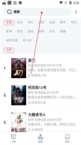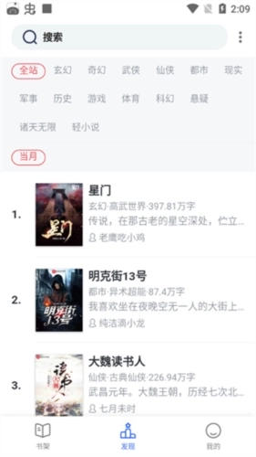 1、启动软件后,“发现”页面汇集了各类小说,用户可任意点击一本进行阅读;