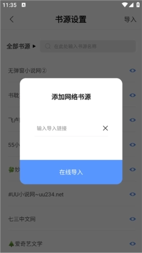 4、若选择通过网站导入书源,用户需填写书源导入链接;