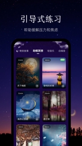 这款软件配备了种类丰富的助眠音乐资源,涵盖自然音效、舒缓钢琴曲等多种类型,能够适配不同用户的个性化偏好与实际需求。