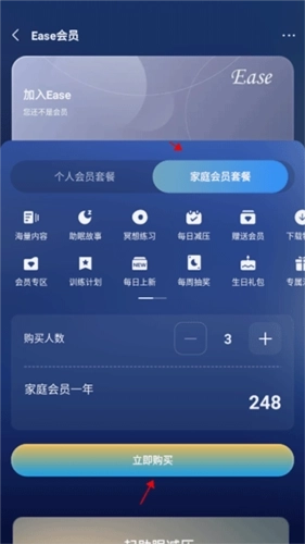 3、右侧为家庭会员套餐,该套餐依据家中人口数量来核算会员价格,选好人数后即可直接购买。