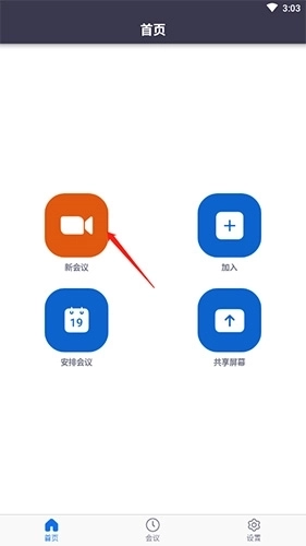 1、打开软件,点击“新会议”选项。