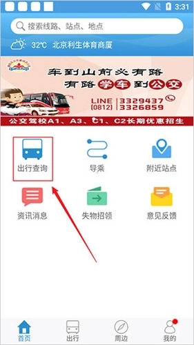 1、进入软件后,点击出行查询。