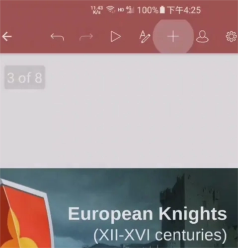 1、这个应用新添加了渐变、纹理和图案这几种填充类型,举个例子,打开一张幻灯片后,点击添加按钮即可操作。