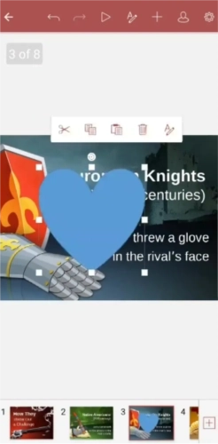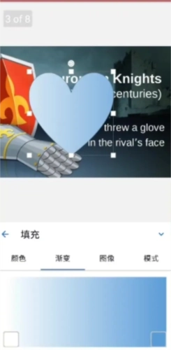7、上方采用单色填充,下方则为渐变颜色,同时还支持图像、纹理等多种填充方式,而且电脑端幻灯片所具备的填充方式,如今在手机端也都能使用了。