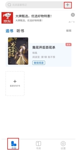 1、在书架页面中点击右上角的+按钮;
