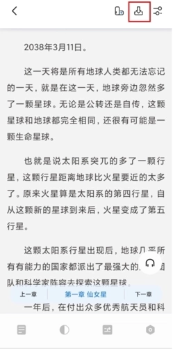 1、在阅读页面中点击右上角的按钮;