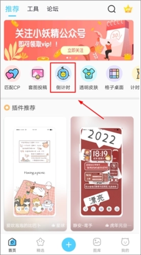 1、打开小妖精美化,点击首页的【倒计时】功能;