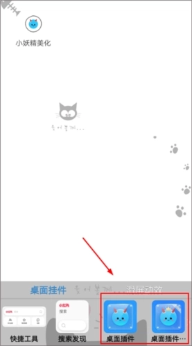 4、之后返回手机桌面,长按桌面直至出现插件选项,查找到小妖精美化插件。