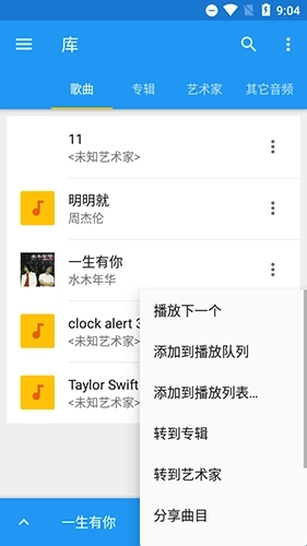 7、播放队列-添加文件夹或专辑到播放队列和添加/删除单个曲目。