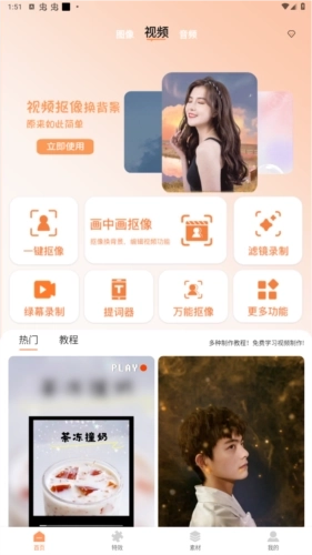 视频抠像是一款由深圳市乐易安科技有限公司发行的专门为喜欢进行视频剪辑、照片美颜p图的摄影美化软件,该软件中是有很多的功能,能够一键抠像、画中画抠像、滤镜录制、绿幕录制、提词器、万能抠像等等,这些功能都是可以帮助用户很好的进行摄像,还会提供相关的教程,手把手教你如何制作不一样的视频,拥有个性化的内容,与其他人的视频分别出来。
