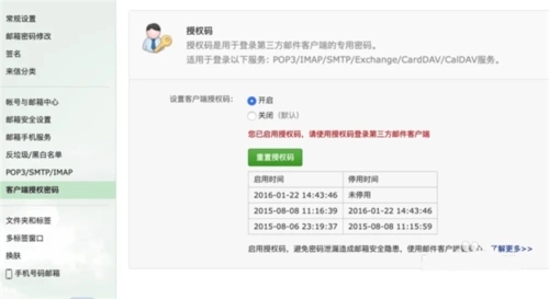 2、网易的邮箱得开启客户端授权密码,这个密码和登录密码不一样,要牢记授权密码,客户端登入的时候要使用授权密码。
