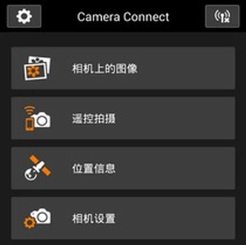 4、在手机上连接相机的Wifi。打开手机上的CameraConnect应用。主界面如下。CameraConnect会自动识别相机配对。相机显示屏上会跳转到确认是否连接该手机的页面,点击确定。出现下图,再点击确定即可。