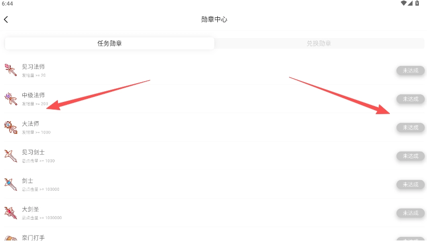 点击进入勋章中心,通过做任务的方式获得勋章值。