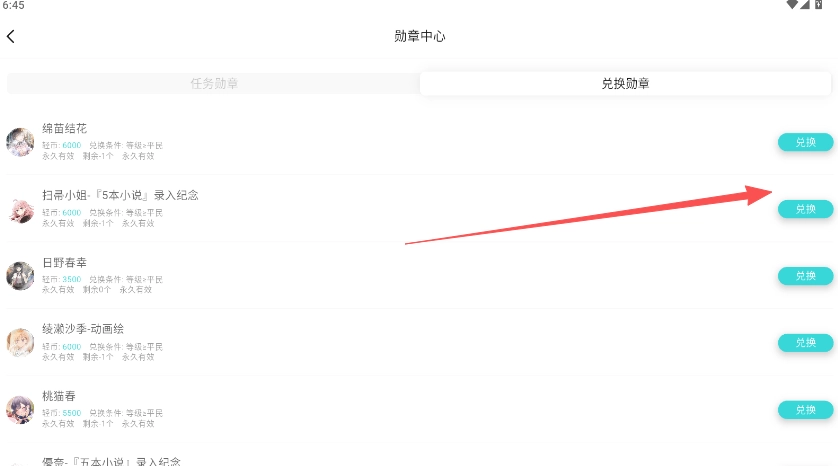 累积达到一定勋章以后,可在勋章兑换区进行兑换。