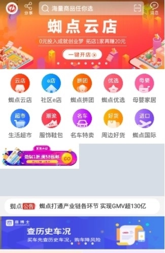 4、蜘点云店:一键打造专属店铺,购物省钱。