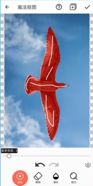 2、魔法抠图功能支持一键抠图,操作时只需在需要抠取的区域简单画一笔,系统就能自动完成识别并实现抠图效果。