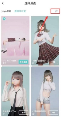2、打开应用后,鹿鸣会从屏幕下方探出脑袋,一脸天真地望着你,此时点击“唤醒”按钮,她就能常驻你的手机桌面了。你可以为她挑选不同的服装、风格与配色,自由搭配出专属自己的个性屏幕。点击界面右下角的“选桌面”按钮,即可进入“鹿鸣练习室”板块,这里不仅有鹿鸣的舞蹈作品和日常片段可供设置为动态壁纸,内容还会持续更新,每次都能让你发现她不一样的魅力。