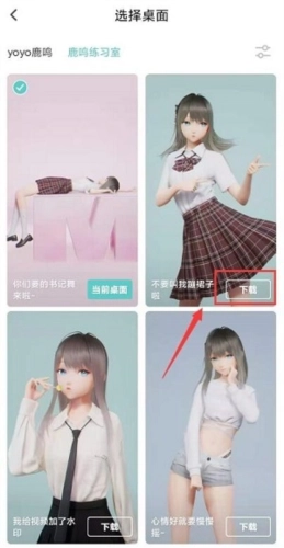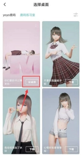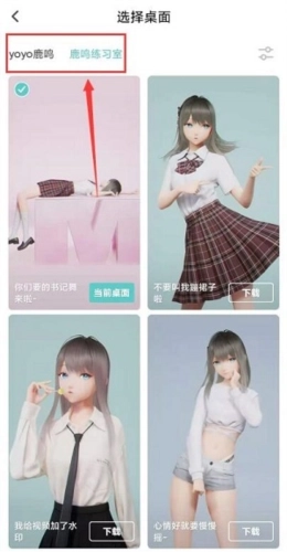5.在此界面直接点击上方的“yoyo鹿鸣、鹿鸣练习室”切换主题,确认后点击进行,再设置为桌面即可。