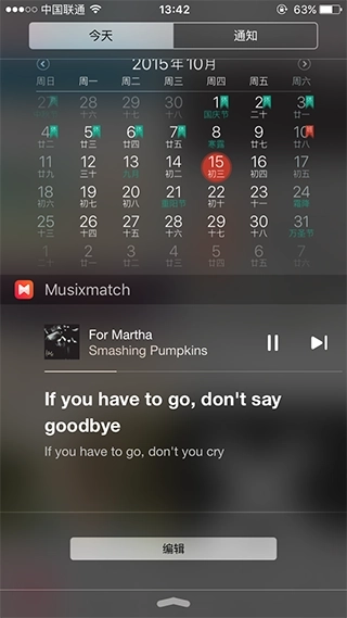 要是你确实不乐意把Musixmatch当成日常播放器来用,也能照旧使用手机自带的「音乐」应用,之后借助Musixmatch的通知中心小部件来展示歌词。
