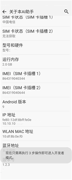一般能在「设置」-「关于手机」-「状态信息」-「IP地址」找到,也可以使用下文里查看设备信息-IP地址一节里的方法用adb命令来查看。