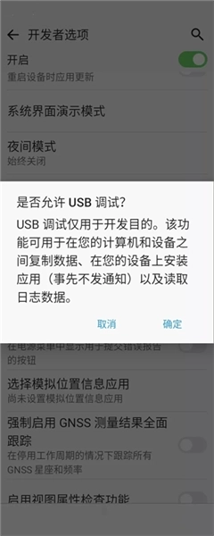 可以到「设置」-「开发者选项」-「Android调试」查看。