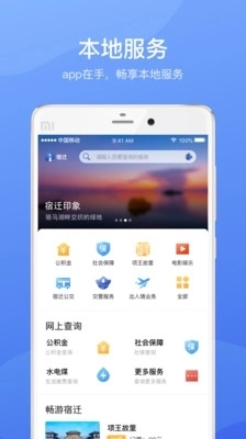 针对政务达人:打开,不仅一键就能查询公积金、社保余额,还可显示宿迁各办事处的窗口电话,知晓繁琐的政务办理流程,从此把政务大厅搬家自家客厅!