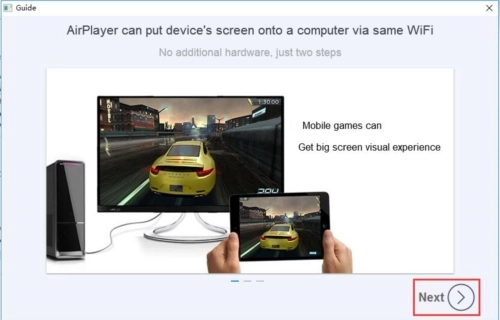 3、首先,用户要确保用于投影的苹果设备与电脑连接着同一个WiFi网络,这是顺利投影的前提条件,之后点击“Next”按钮进入下一步操作。