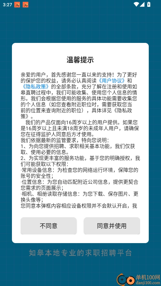 打开软件阅读“温馨提示”点击“同意并使用”进入