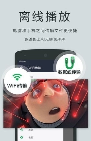 -多种传输途径:1.数据线传输(借助iTunes文件共享功能实现)2.WiFi无线传输,把文件传送至本地设备。传输到本地的视频支持离线观看。