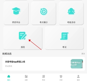 1、在央音考级首页点击“报名”;