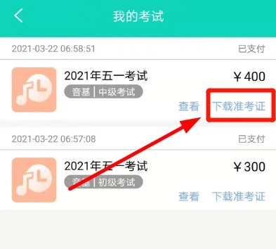 1、在央音考级“我的”界面点击进入“我的考试”;