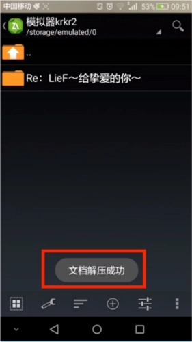 2、接下来我们执行解压操作,会看到文档解压成功的提示,这里就以《给挚爱的你》作为例子。