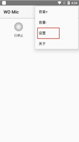 在手机上打开WOMic应用。在开启服务器之前,您可以进入“设置”界面来调整您偏好的各项配置。