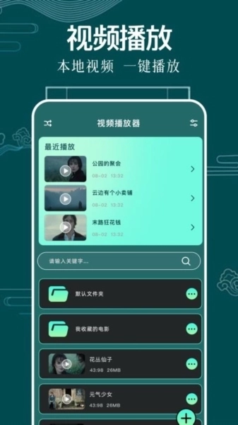 用户能够查找手机本地存储的视频资源,导入不同格式的视频文件并进行管理。