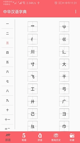 1、打开中华字典应用后,在主界面上能看到部首查询、拼音查询等功能选项。