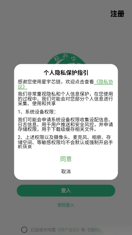 首先打开应用点击“同意”按钮来进入中。