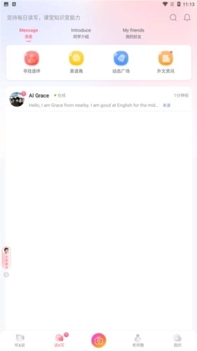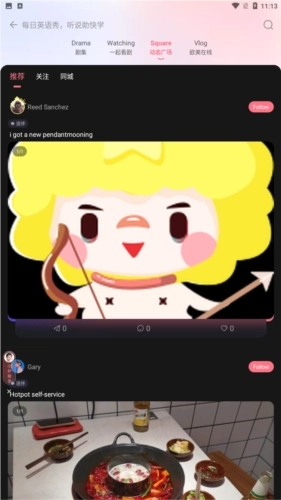 1、分享照片与视频,用英语定格美好生活瞬间。无论你脑洞大开、才艺出众还是身怀绝活,这里都有属于你的广阔舞台