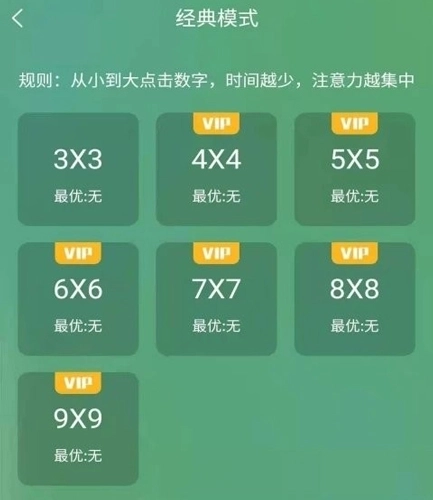 【训练模式】采用标准舒尔特方格训练法,支持自定义格数以调整难度!