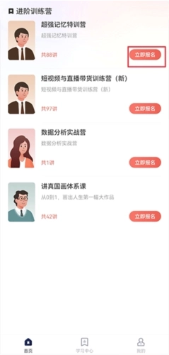 4、进入后点击立即报名即可等待课程开播